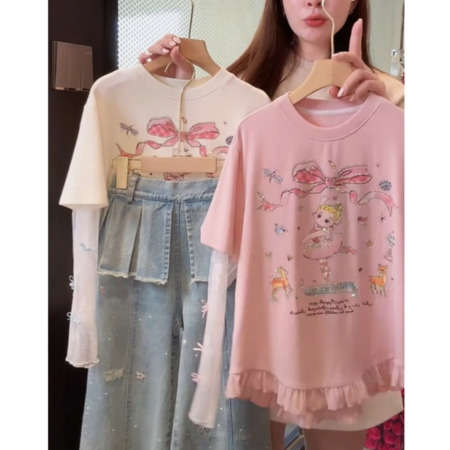 余*子将商品“烫钻蕾丝短袖牛仔裤套”发布到淘宝